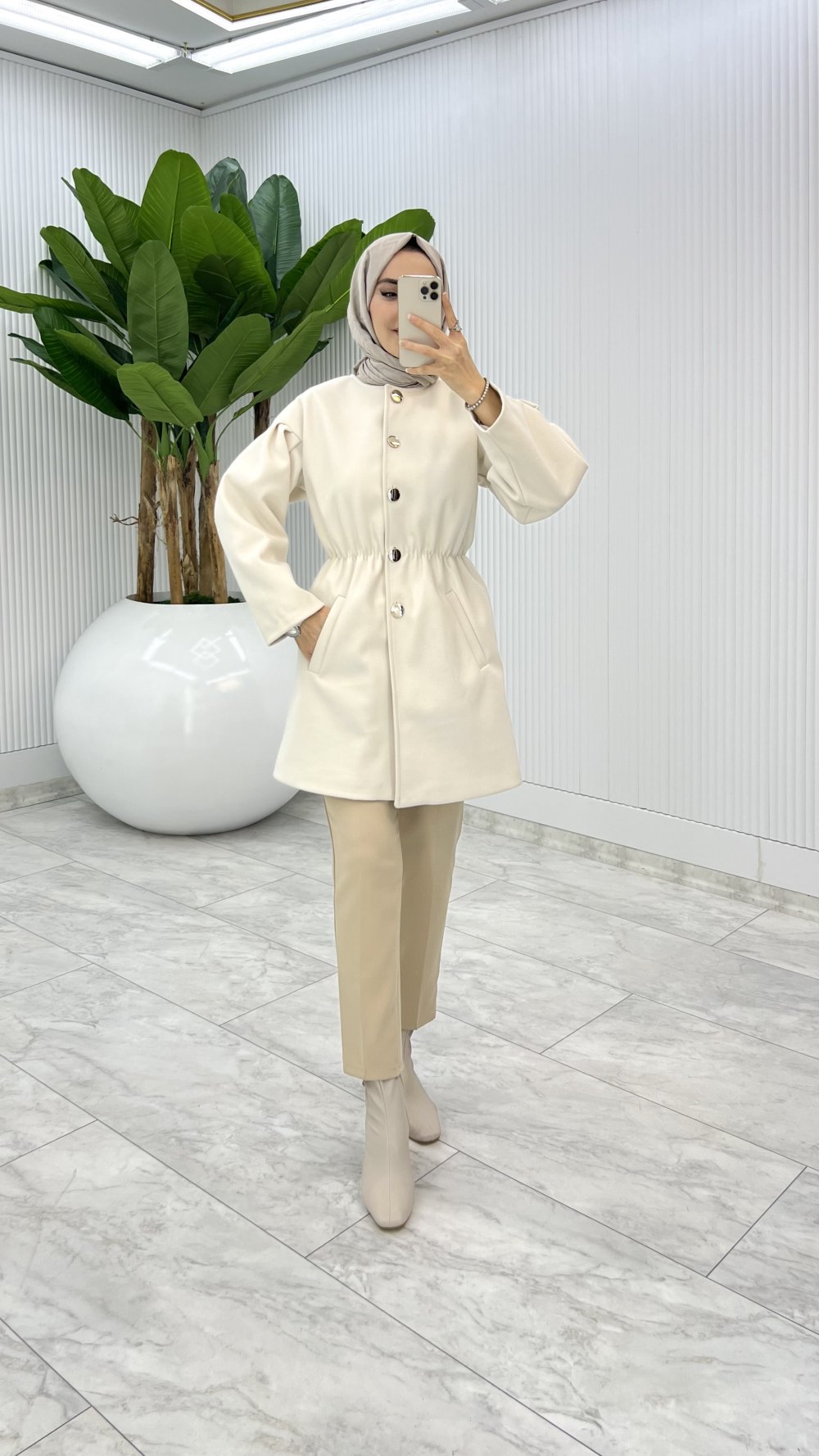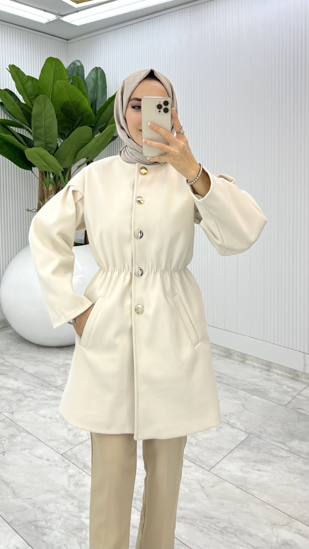 Bej Yelda Astarlı Kaşe Tesettür Giyim