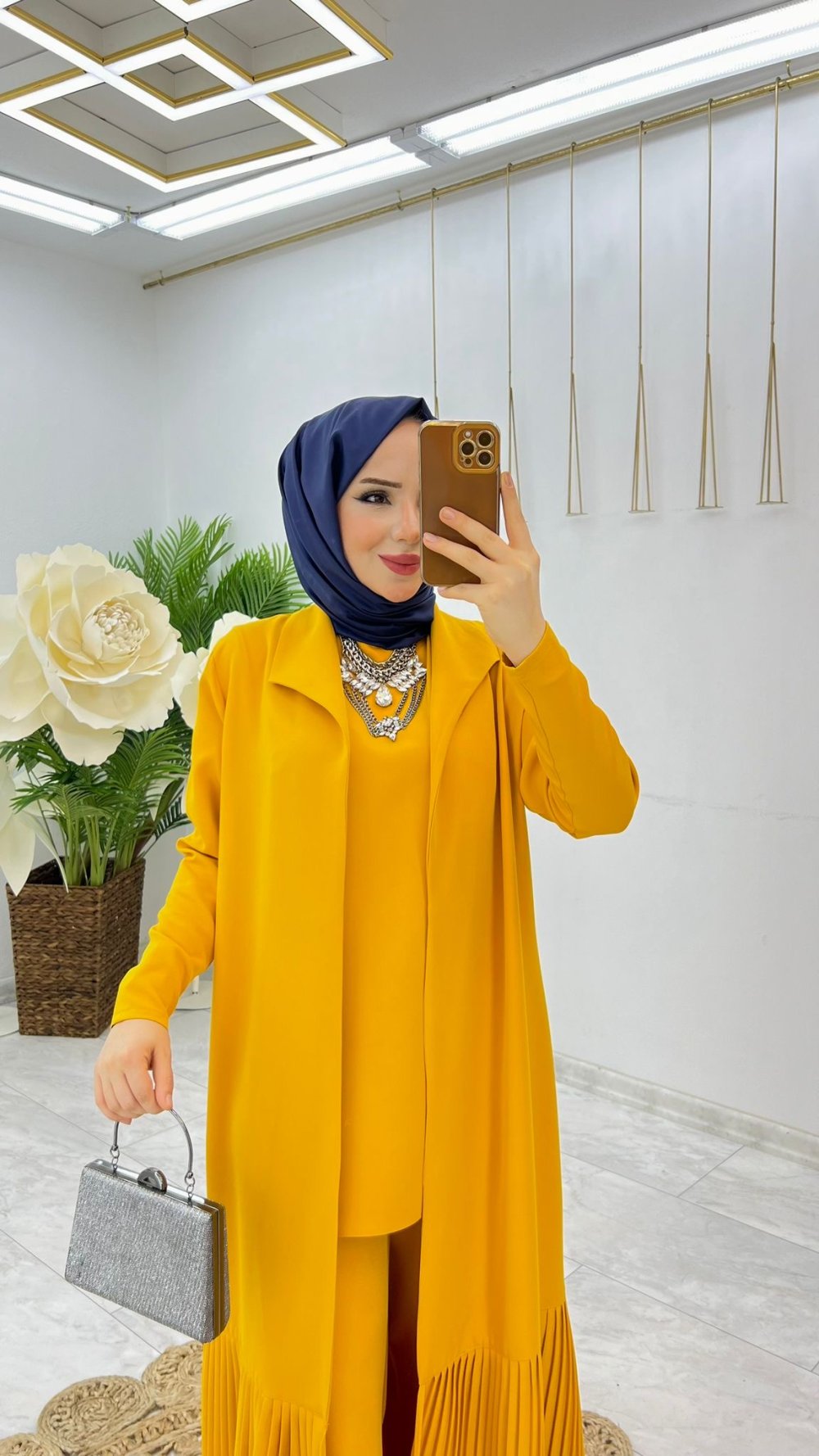 Hardal Premium Üçlü Büşra Takım Tesettür Giyim
